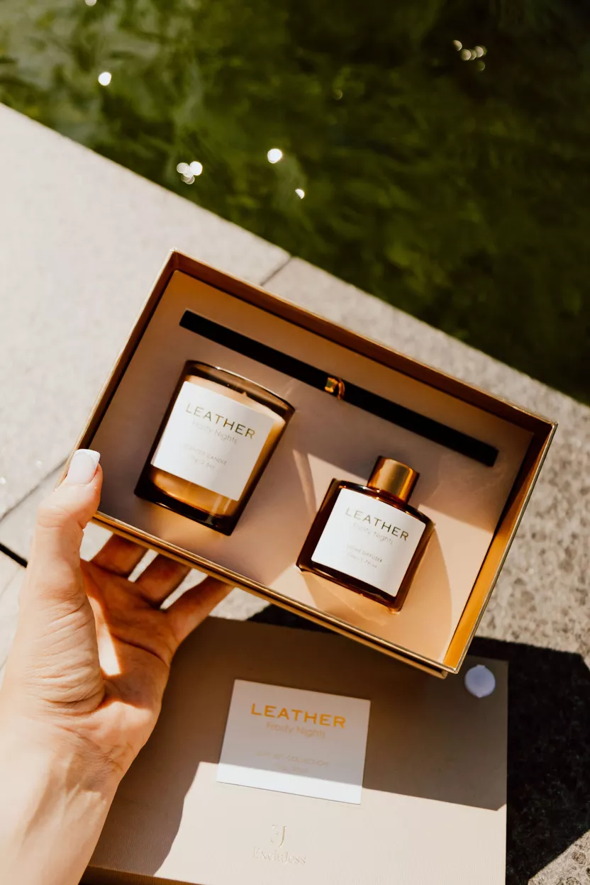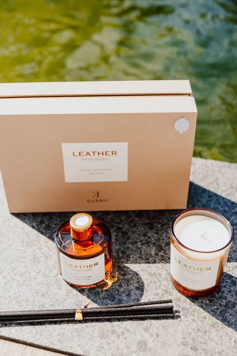Bring the Magic of a Starry Night Indoors** with the Frosty Nights Leather Feel Gift Pack, featuring a mini diffuser and candle from our exclusive leather feel collection. This enchanting scent invites you to open the doors to a world of serene beauty and wonder.